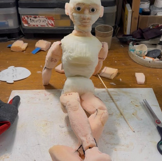 Pour Lionel, la fabrication d'une marionnette était une page blanche. Sans aucune technique préalable, il s’est jeté dans la fabrication avec la curiosité de celui qui découvre un nouveau terrain de jeu. Guidé par l’expertise de Patricia, notre directrice artistique, il a appris que la mousse permet toutes les audaces : on coupe, on colle, on teste, on recommence.